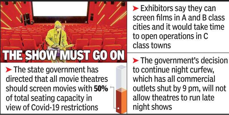 The film exhibitors are moving slow to resume operations for fear of incurring losses due to the ceiling fixed by the state government on movie ticket prices. The exhibitors have been demanding suspension of the controversial government order that has put a cap on the ticket prices.
