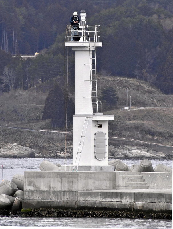 According to the Kamaishi Coast Guard Office, the lighthouse in Kirikiri Port in the town of Otsuchi was one of 50 earmarked for renovation or rebuilding out of the 82 that stood before the disaster. The process has now been completed.
