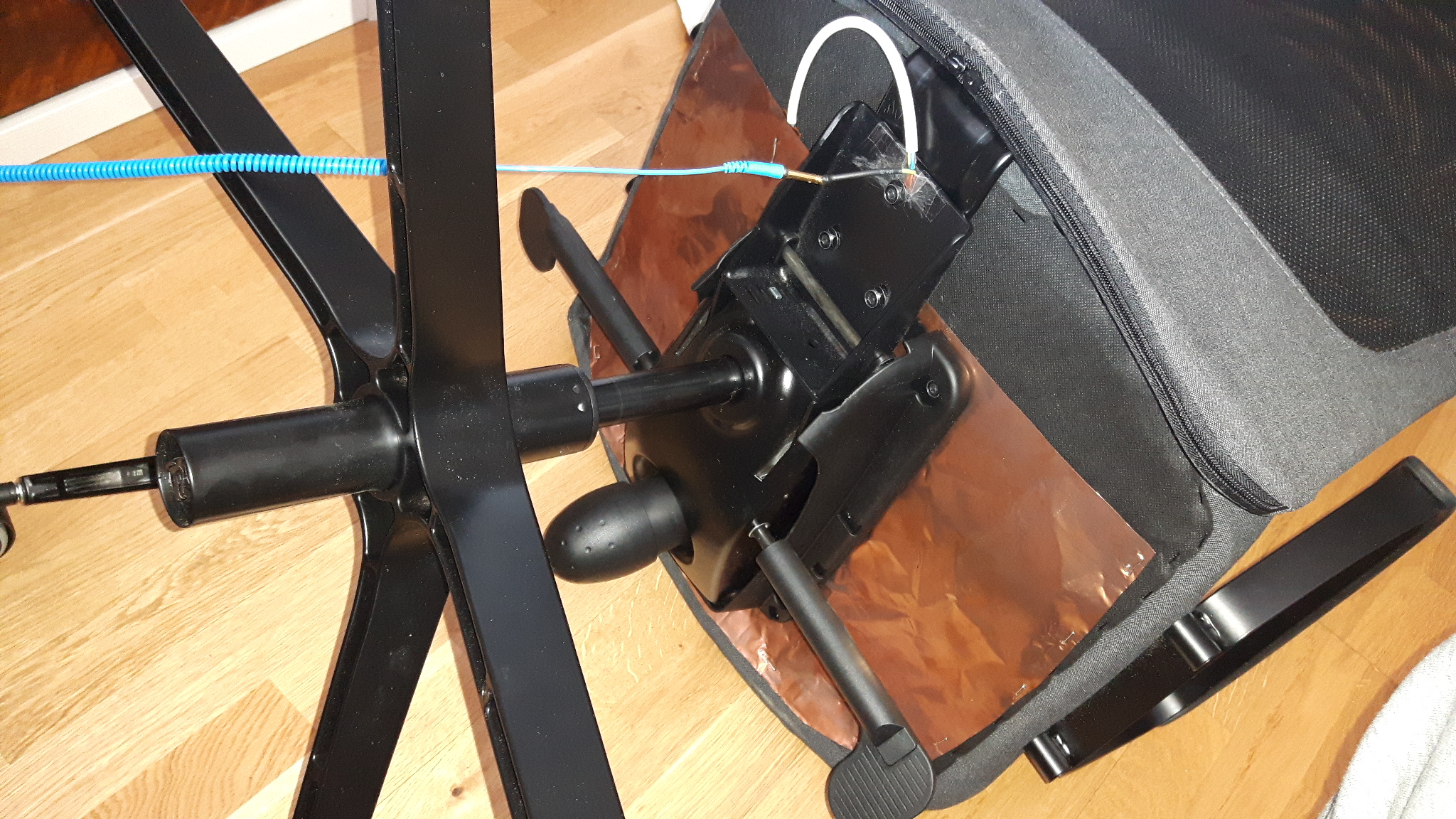 Most people would have ditched the chair at this point, having finally figured out the problem, but not the enterprising Capt. on the ComputerBase forums. No, they stapled copper foil under the Ikea seat and then connected that to the ground of a power socket via a one megaohm cable.