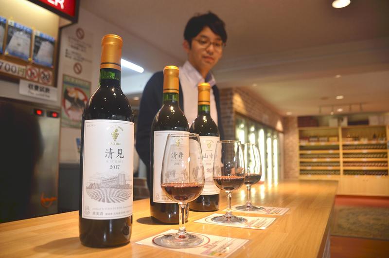 "My title is head salesman of this castle," Ichinohe said. Here visitors can enjoy steaks of Ikeda beef, another local specialty, at a restaurant, and cakes made with wine and other special products are also on the shelves. About 220,000 people visit the winery every year.