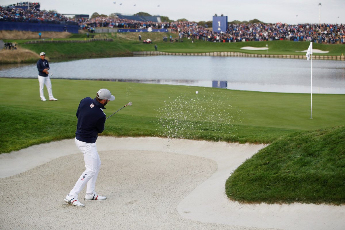 None of the foursomes matches reached the 17th green, with two finishing on the 14th, as the Europeans bounced back superbly to give their fans plenty to cheer after they had been quietened by the morning setback at Le Golf National near Paris.