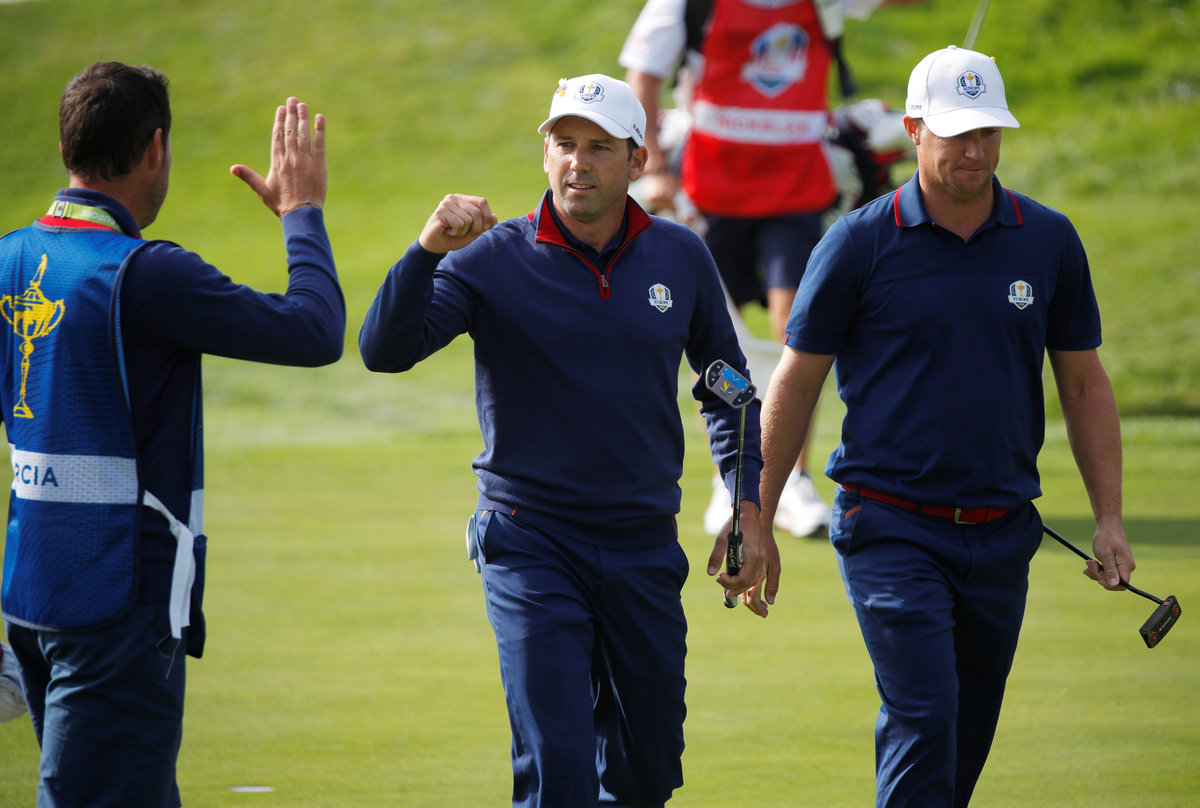 Sergio Garcia and rookie Alex Noren led the way by annihilating Phil Mickelson and Bryson Dechambeau 5 and 4 and it could have been even more emphatic as they led by seven after a front-nine birdie-fest.