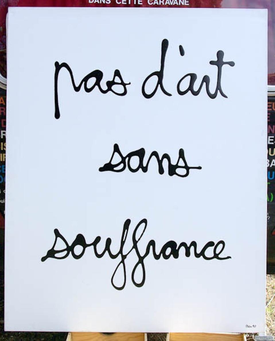 I was interested in abstract painting, so I thought Viseux does this, Poliakoff does this, Soulages does this, Malevich did this, Mondrian did this, and I said, “What can I find that they did not do?” I discovered the form of the banana, and I said I’m going to be the first to do bananas, so I did very simple bananas. Yves Klein told me that bananas were finished because a monochrome is stronger than a banana. A monochrome is like if you have four aces and a banana is only full house. It’s good but it’s not strong enough. So I gave up bananas and I went to a show where the other artists had put their paintings up. I thought maybe I should just write, “Look at me, that’s enough.” I put that up and everybody looked at it and laughed, and I was very pleased. Then I said I would become the specialist of truth and I would write esthetic truths: this weighs 20 grams, this weighs 15 grams. And then I will write subjective truths like “I am jealous of Boltanski” or “I am jealous of this, I am jealous of that”. And it worked. It had my personality. I became “Mr. Writing”.