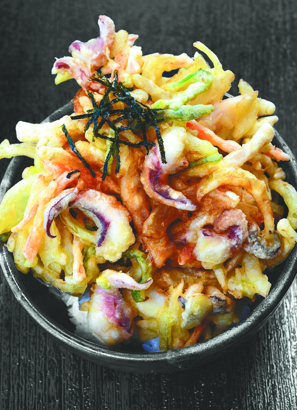Thinly sliced cuttlefish, onions, carrots and other ingredients are fried and drenched in a sweet and savory sauce.