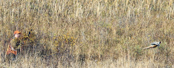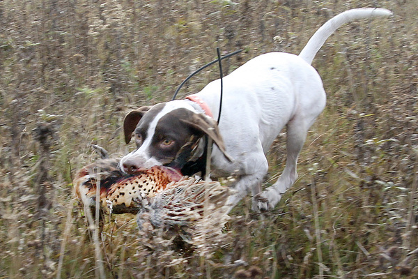 Wiklund walked in on Jaxon's point. A gaudy rooster first ran, then took flight. Wiklund's 12-gauge double-barrel sent the rooster tumbling across a sky where low clouds were beginning to break up. Jaxon raced out to pick up the bird and delivered it to Wiklund.