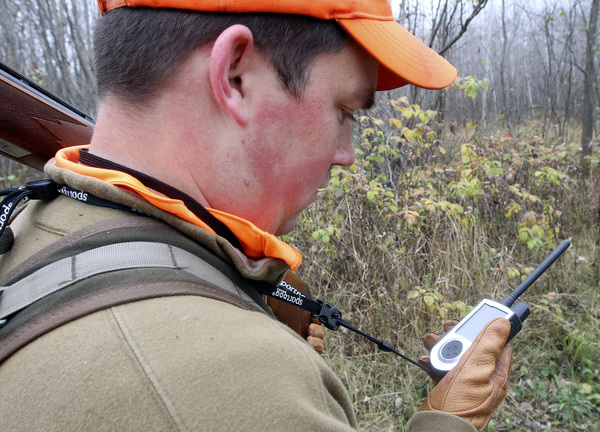 We took our best guess at where some of the bids might have settled and moved in that direction. The soft clank of Jaxon's bell let us know where he was much of the time, and if he was out of sight and sound for long, Wiklund just checked the GPS receiver he wore around his neck. Jaxon was wearing the transmitter.