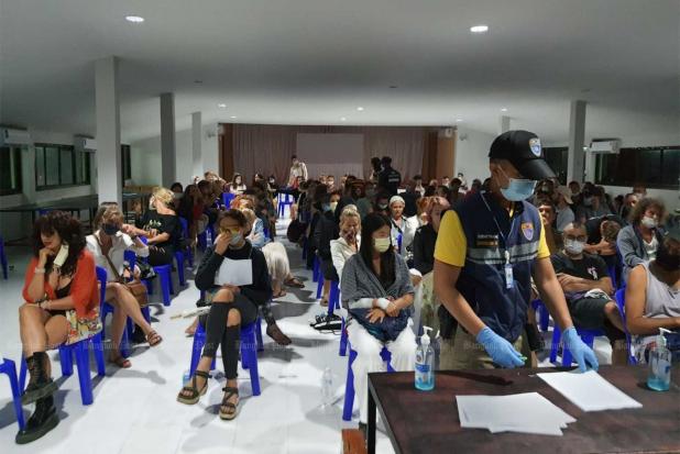 A total of 109 customers were detained - 89 foreigners (38 men and 51 women) and 20 Thais (7 men and 13 women) - when immigration and tourist police and local officials raided the Three Sixty Bar in Koh Phangan district on Tuesday night.