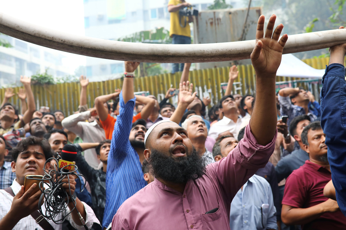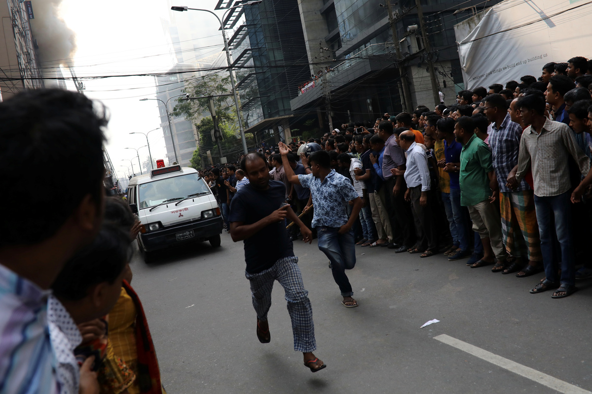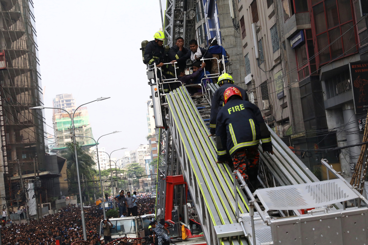 Search operations went on late into the day as some of the trapped waved frantically from the windows and roof of the building in the upscale Banani area of the city, while others tried to jump to safety.