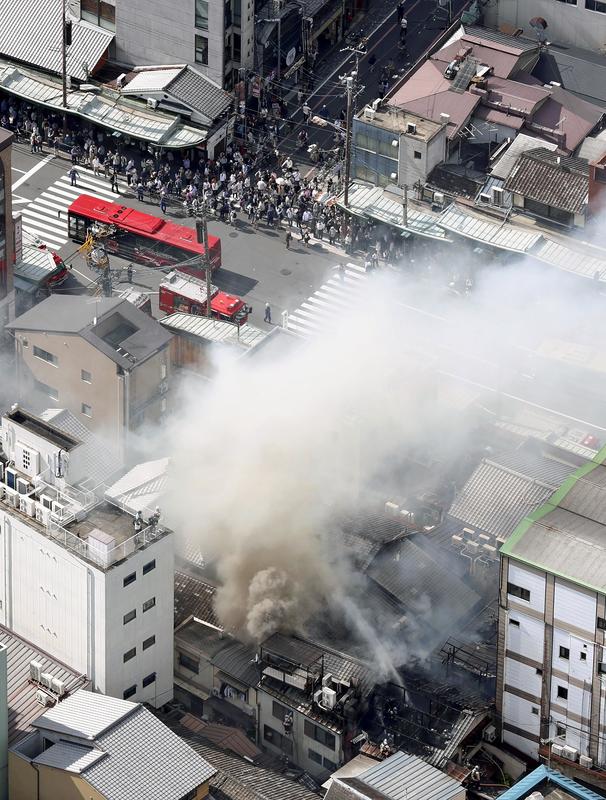 A fire broke out Saturday afternoon at Chihana, a Japanese restaurant with three Michelin stars in the Gion district of Kyoto, affecting six neighboring buildings and burning 225 square meters in total.