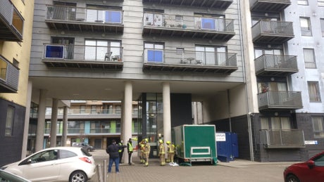 Firefighters were called after a witness reported smoke coming from a temporary building used by the waking watch patrol at New Haddo development in Greenwich. The area was quickly declared safe but one resident said that the arrival of fire engines was “highly concerning”.