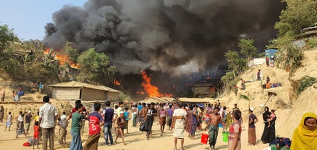 The fire at Balukhali camp in Cox's Bazar district broke out in the late afternoon and spread quickly through at least four blocks, said Mohammad Shamsud Douza, additional commissioner of the government's Refugee Relief and Repatriation Commission. He said at least four units of firefighters were struggling to control the blaze due to its rapid spread.