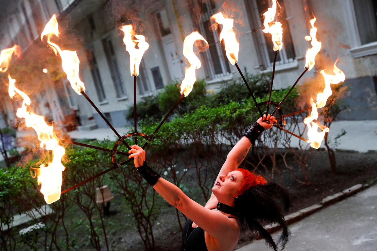 Kovacs belongs to an innovative performing arts troupe called Taurin Circus. The group have their first performance of the season in front of paying spectators scheduled for June 13 at a festival. In the meantime, they have planned a series of informal outdoor performances where audiences can donate money if they wish.
