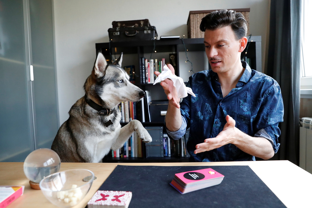 He used lockdown time to work on new acts with his blue-eyed dog Lupin, who performs card tricks. He has also learned new skills in video and photography while running a popular online magic show that helped him get by financially.