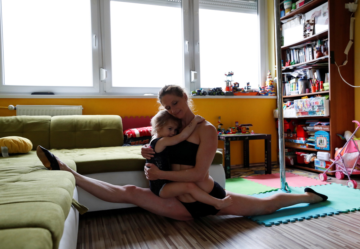 Fellow group member Kata Ott-Balogh, a pole acrobat, also had to adapt to the peculiar circumstances of lockdown. She installed two vertical poles in the middle of her living room, which also serves as an office.