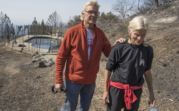 Something about their story captured imaginations. Perhaps it was simply that it had a happy ending _ they survived, together, by their own wits _ when so many others perished in October's California wine country fires. At first light, when the fire died down, they got out of the pool. Holding hands, covered in soot and shivering in the 40-degree chill, they walked until they found a sheriff's deputy, who said the couple walking toward him looked like "zombies coming out of the ash."