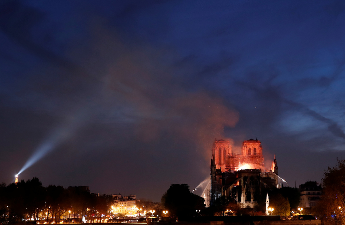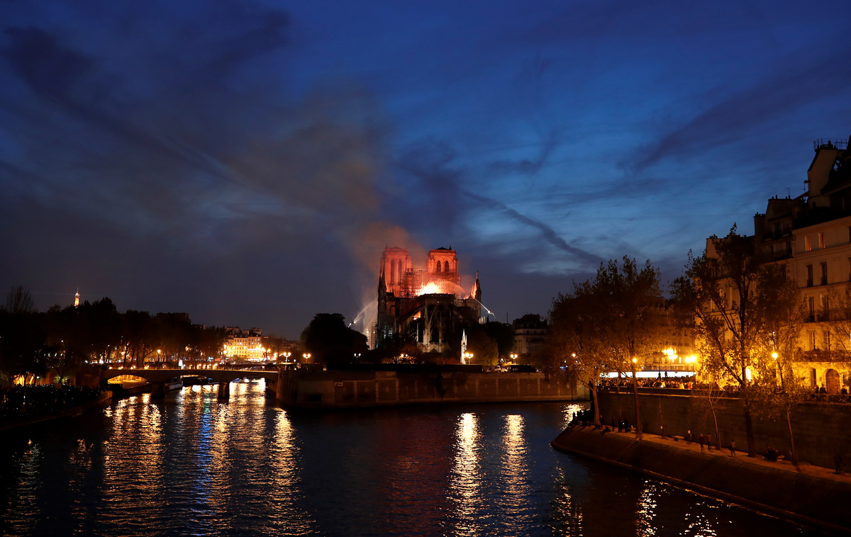 PARIS (Reuters) - A massive fire consumed Notre-Dame Cathedral on Monday, gutting the roof of the Paris landmark and stunning France and the world, though firefighters saved the main bell towers and outer walls from collapse before bringing the blaze under control.