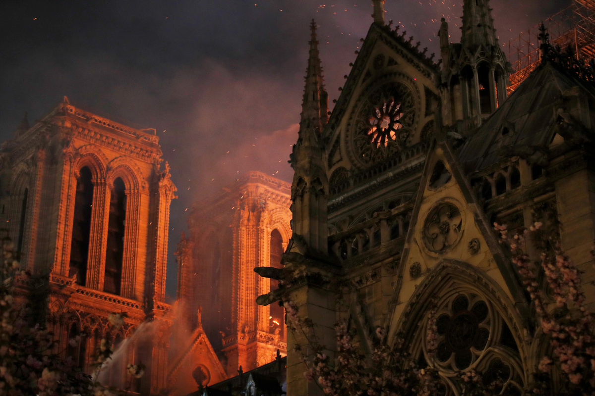 Macron cancelled an address to the nation that he had been due to give on Monday evening in a bid to answer a wave of street protests that has rocked his presidency. Instead he went to the scene of the blaze with his wife, Brigitte, and some of his ministers. He thanked and congratulated firefighters.