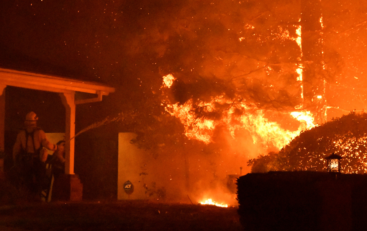 One man who stayed put in an effort to defend his own property from the flames suffered a fatal heart attack, and three firefighters out of some 1,000 assigned to the blaze sustained minor injuries, authorities said.