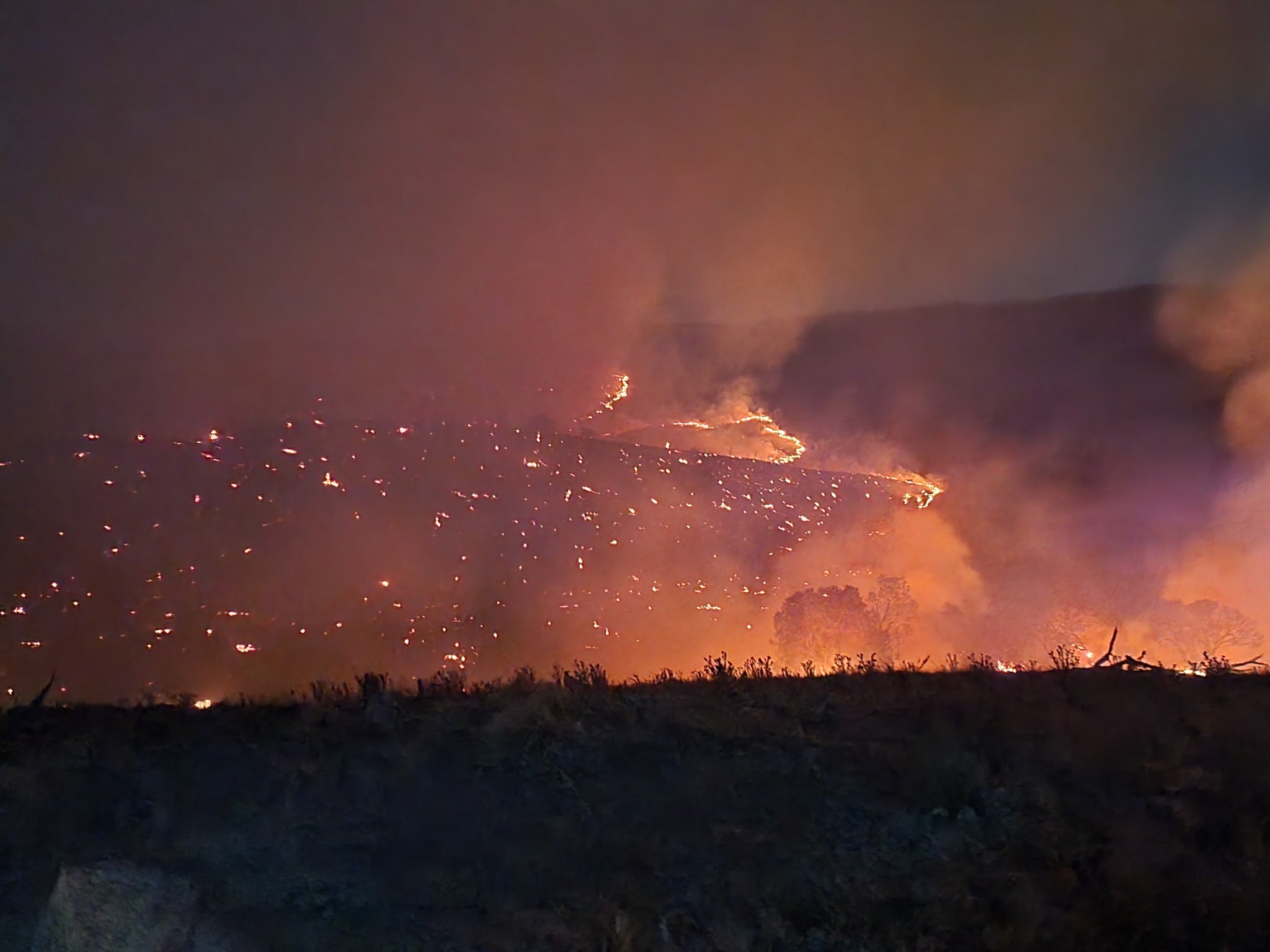 The fire was downgraded to Watch and Act level overnight, but has again been upgraded to Emergency level.