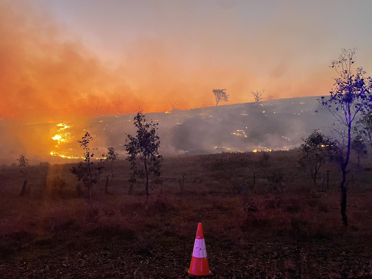 Crews have a busy night ahead as a south-westerly wind change is expected to push the fire and smoke to the north-east, towards Pyramul.