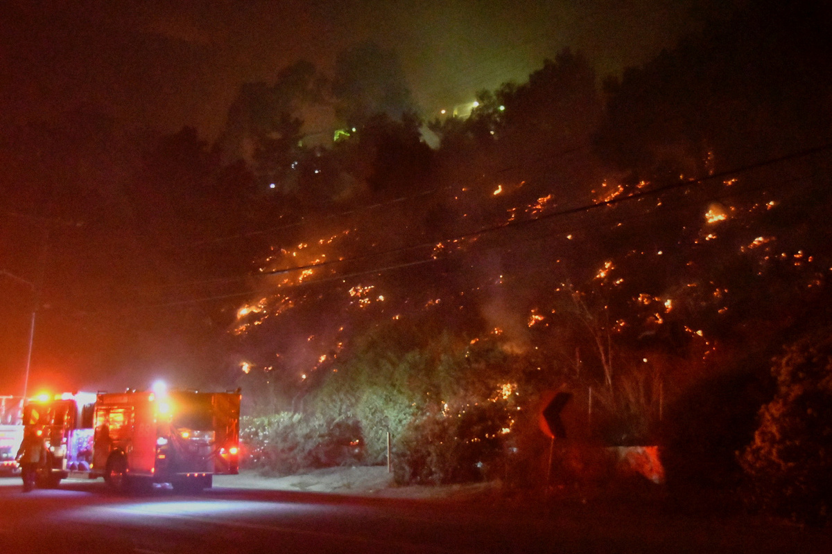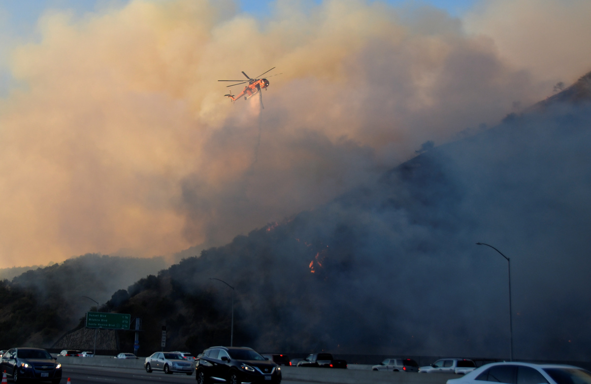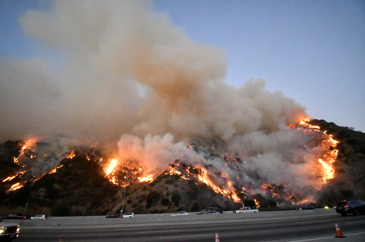 Commuters posted videos on social media of entire hillsides engulfed in orange flames at the highway's edge and the South Coast Air Quality Management District issued a "smoke advisory" to alert residents of unhealthy air.
