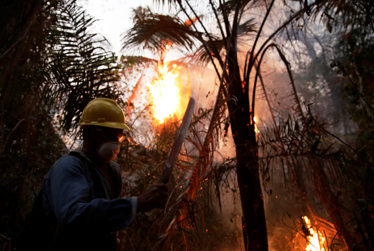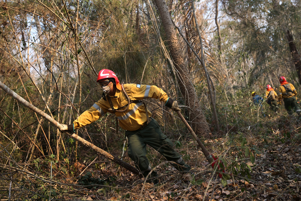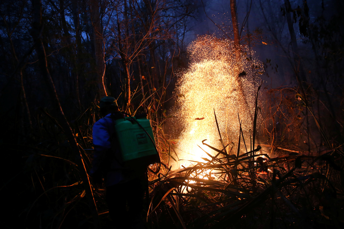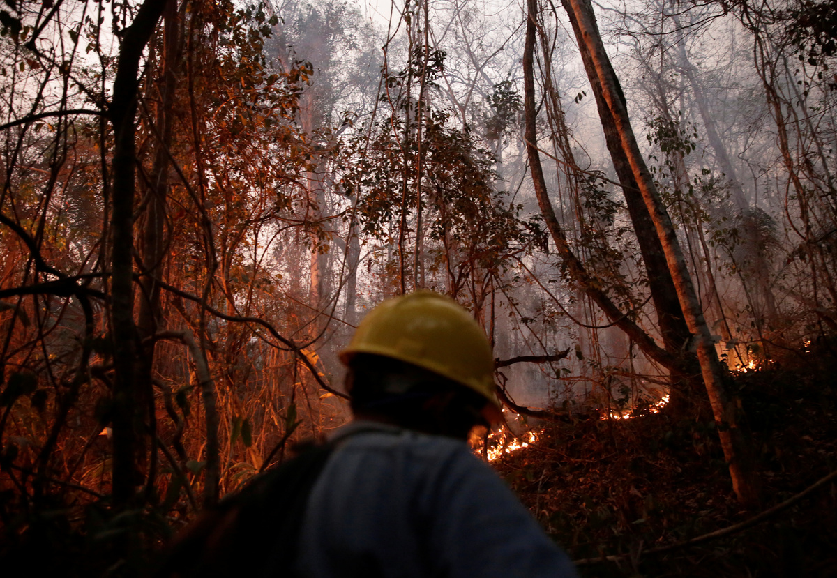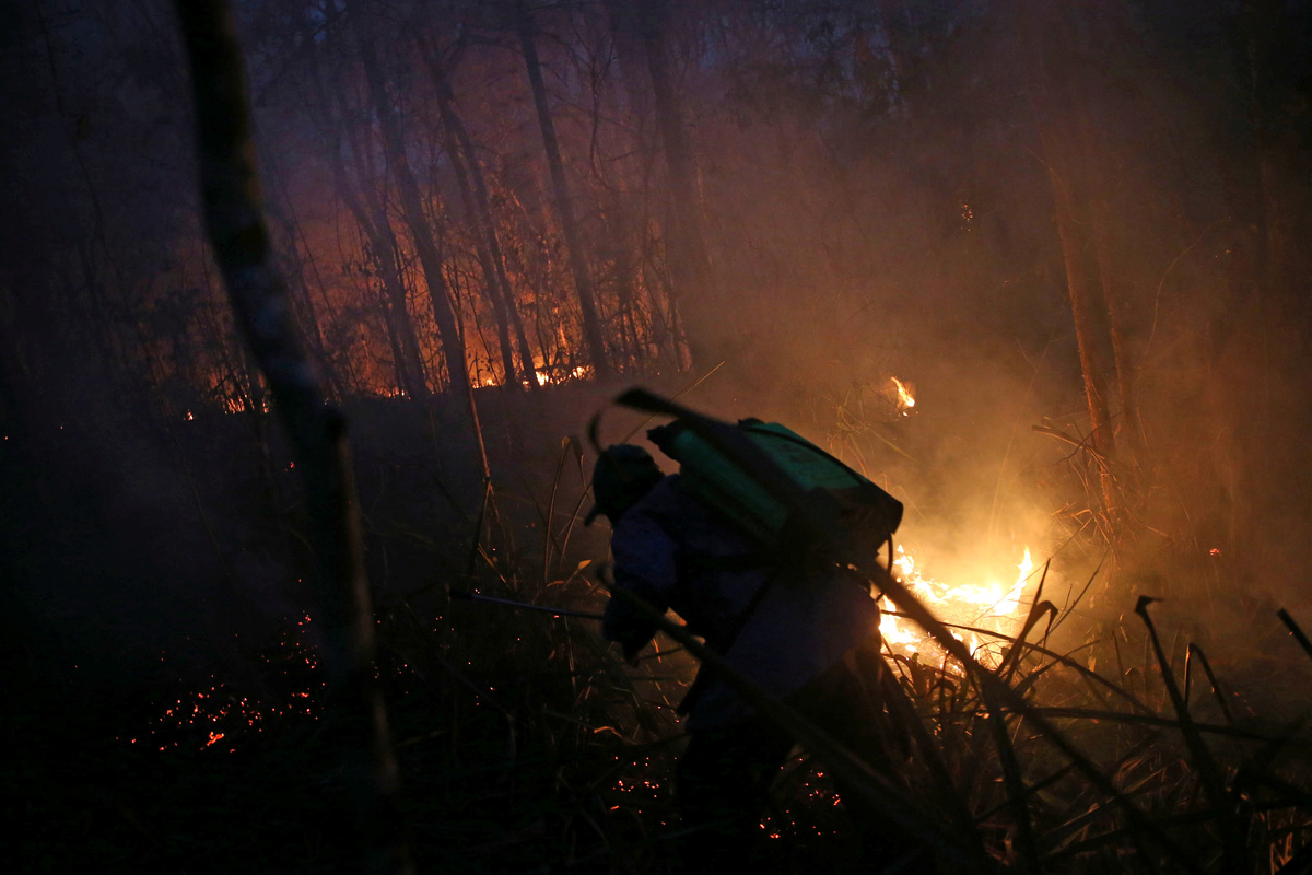 CONCEPCION, Bolivia (Reuters) - Bolivian volunteer firefighters, exhausted from battling blazes sweeping rapidly across the country's lowlands, are starting to lose hope and retreat from the front lines of some infernos in the drought-stricken region.