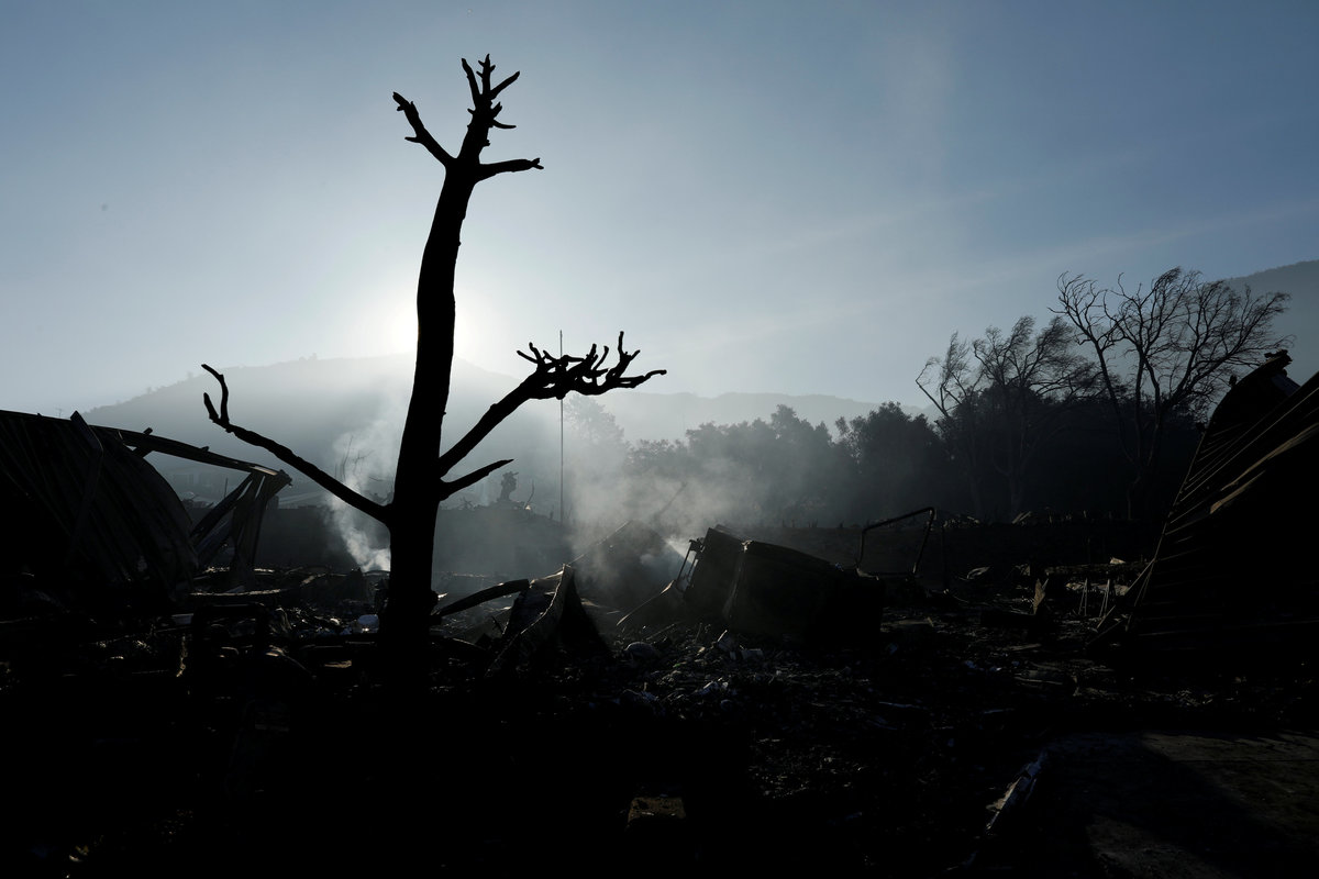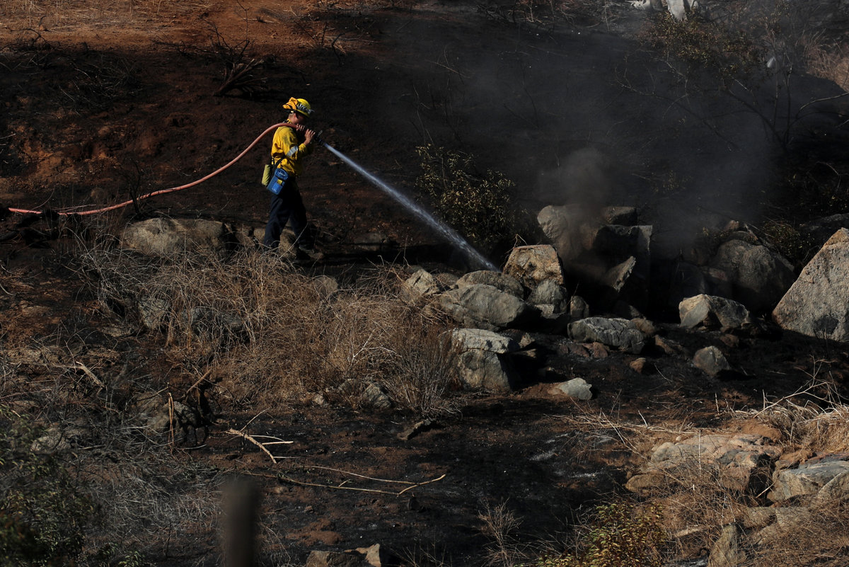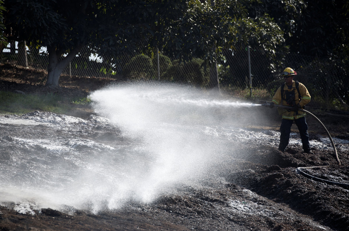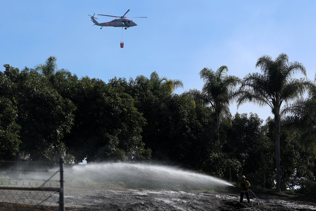 North of San Diego, the 4,100-acre (1,660-hectare) Lilac Fire was 20 percent contained by Saturday, officials said. Fallbrook, known for its avocado orchards, burned, and homes were destroyed in its Rancho Monserate Country Club retirement community.