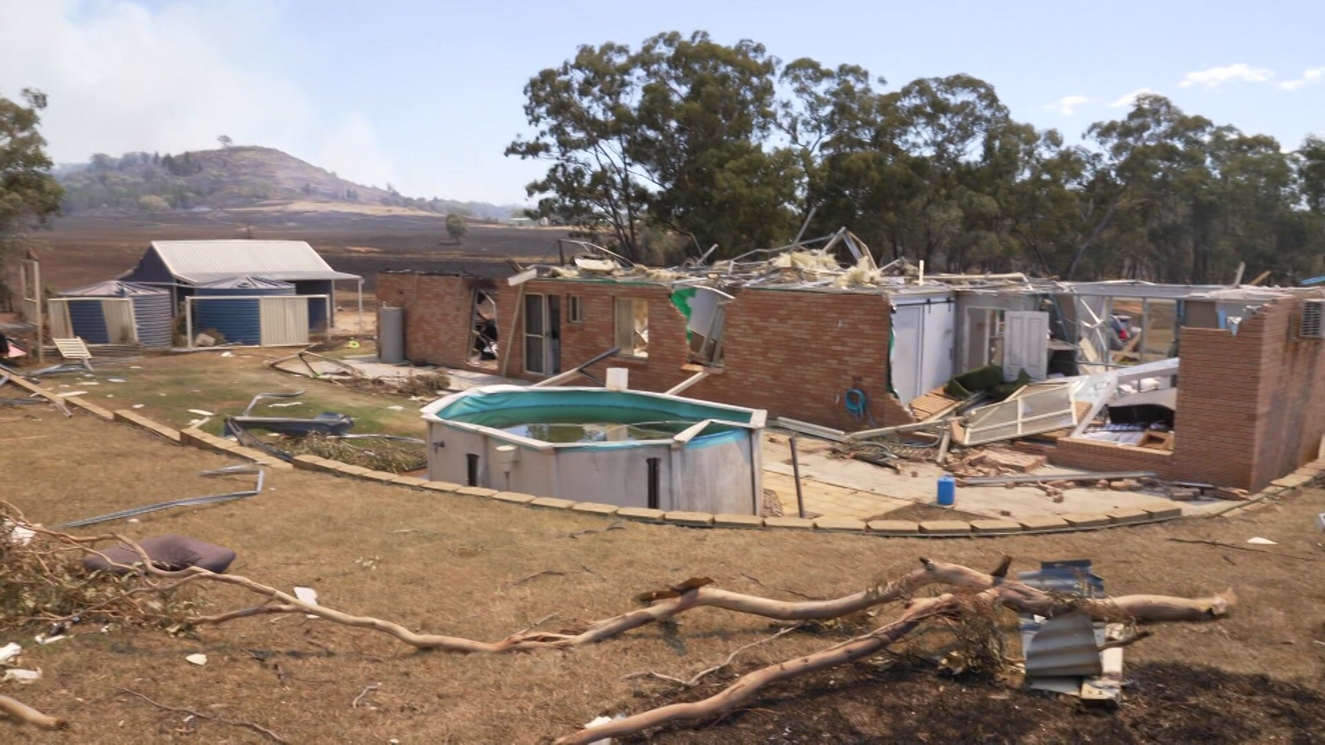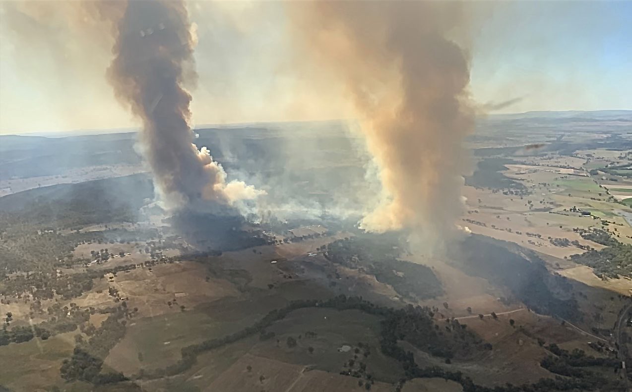 Canobolas RFS operations officer Nils Waite reported that a "fire whirlwind" on Thursday produced wind gusts of up to 200km/h that ripped off the roof of a house, damaged vehicles and tore trees out of the ground.