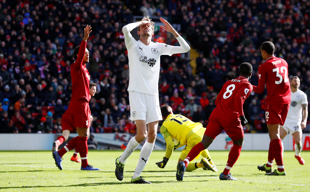 It was the visitors though, who took a surprise lead in the sixth minute, with Ashley Westwood scoring direct from a corner although Burnley's James Tarkowski looked to have impeded Liverpool keeper Alisson Becker.
