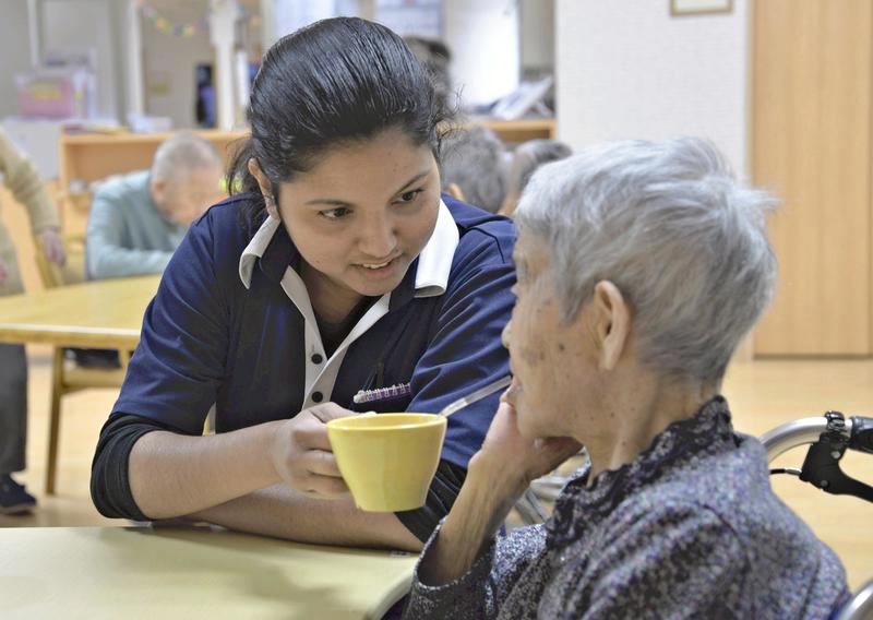 "You look very well. Would you like some tea?" asked a trainee working at a nursing home in Fukaya, Saitama Prefecture, earlier this month.
