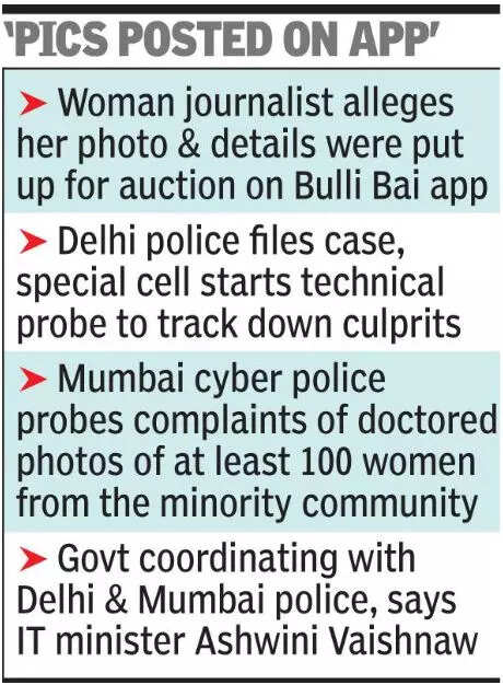 GitHub has blocked the ‘Bulli Bai’ site. “GitHub confirmed blocking the user this morning. CERT and police authorities are coordinating further action,” tweeted Union IT minister Ashwini Vaishnaw on Sunday. He said the government was working with police in Delhi and Mumbai. The special cell of Delhi police has also started a technical probe to track down the culprits.