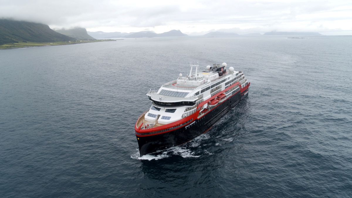 The hybrid expedition cruise ship, the Roald Amundsen, can take 500 passengers and is designed to sail in harsh climate waters.