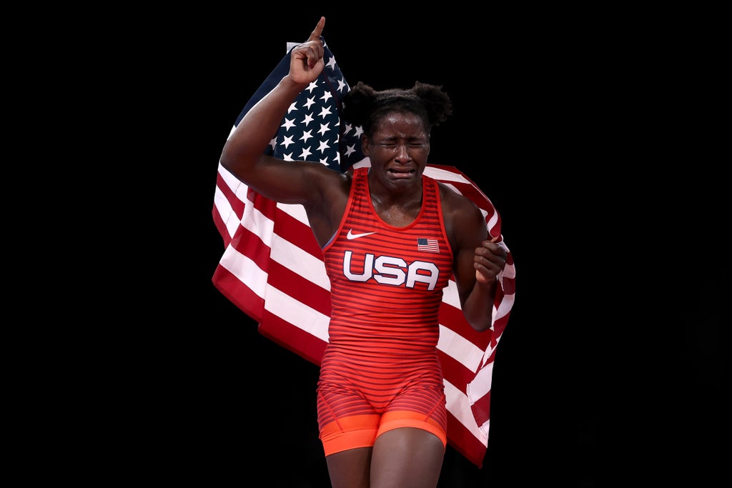 After Tamyra Mensah-Stock won the Olympics women’s wrestling freestyle 68kg gold medal – the first Black woman to take the prize – she formed a heart sign with her hands and showed it to both sides of the arena.