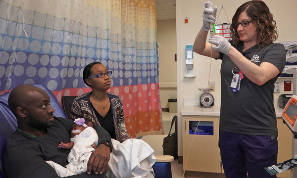 In the Children's Mercy NICU, Jevon stood near Julie and Juliana.