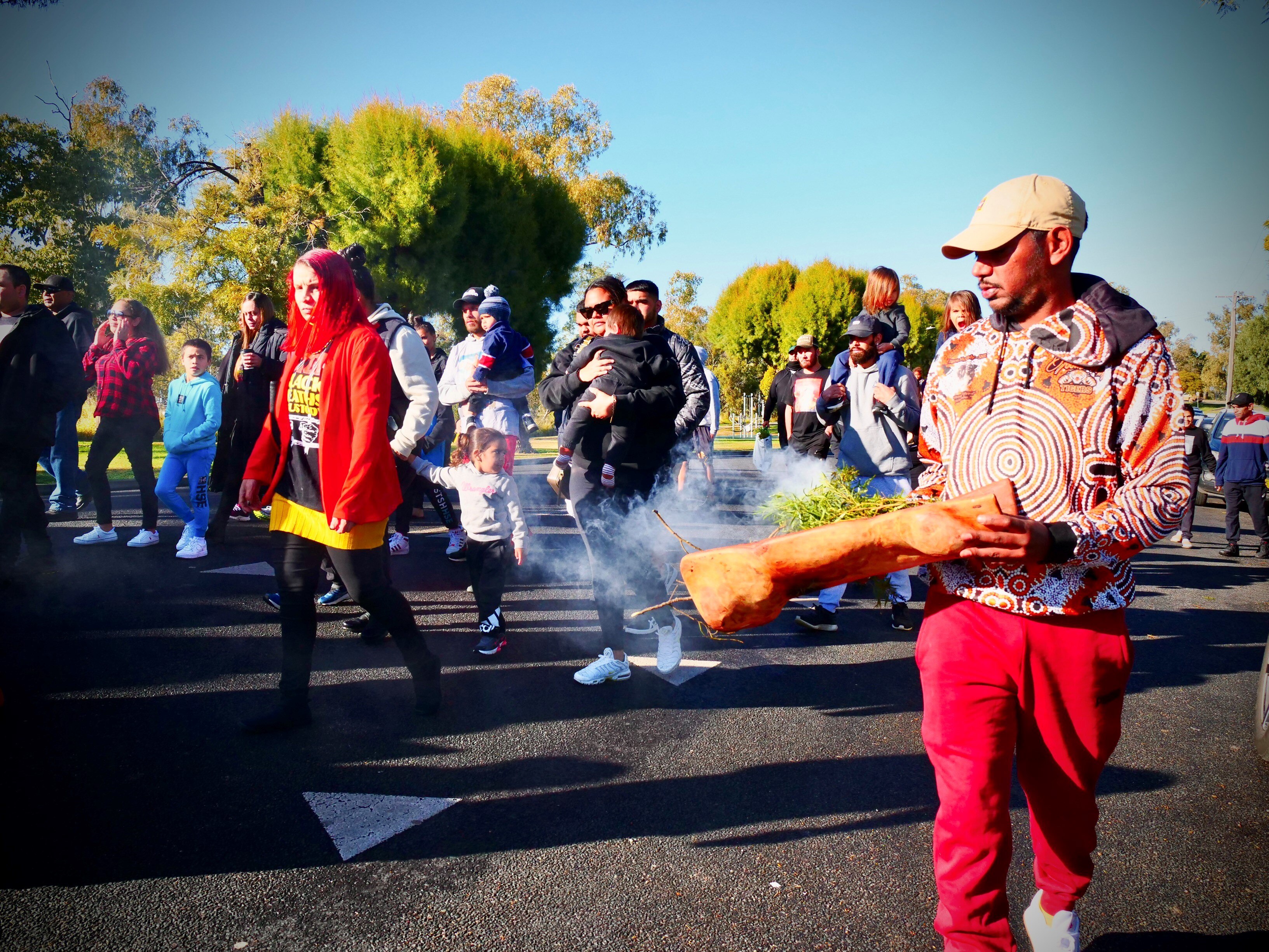 Family and friends of Mr Copeland and their supporters gathered outside the court before proceedings to conduct a smoking ceremony that was attended by Magistrate O'Sullivan.