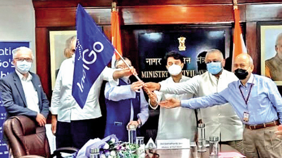 Union civil aviation minister Jyotiraditya Scindia flagged off an Indigo’s flight — under the central government's regional connectivity scheme ‘UDAN’ (Udey Desh Ka Aam Nagrik) — at a virtual function that was attended by minister of state VK Singh and Bareilly MP Santosh Gangwar in Delhi.