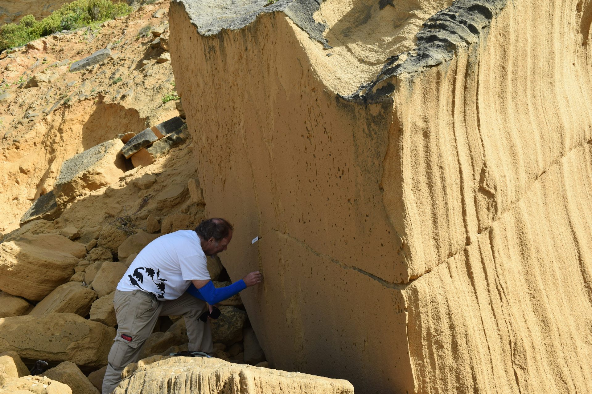 One question related to our find is how the trackways were preserved. Most likely, we suggest, wind blew fine dry sand over the beach surface where the tracks had recently been made in wet sand, preserving the tracks and later creating a separation layer. This allowed for their fortuitous discovery 100 000 years later.
