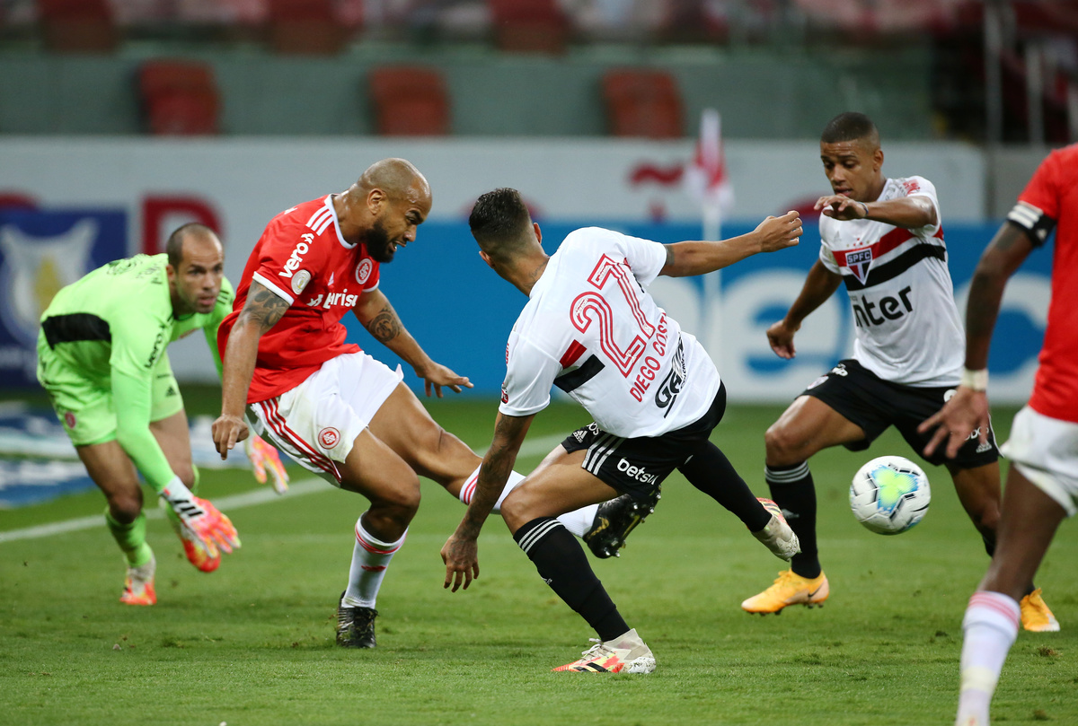 Soccer Football - Brasileiro Championship - Internacional v Sao Paulo - Beira Rio stadium, Porto Alegre, Brazil - September 26, 2020 Internacional's Rodrigo Moledo in action with Sao Paulo's Diego Costa REUTERS/Diego Vara