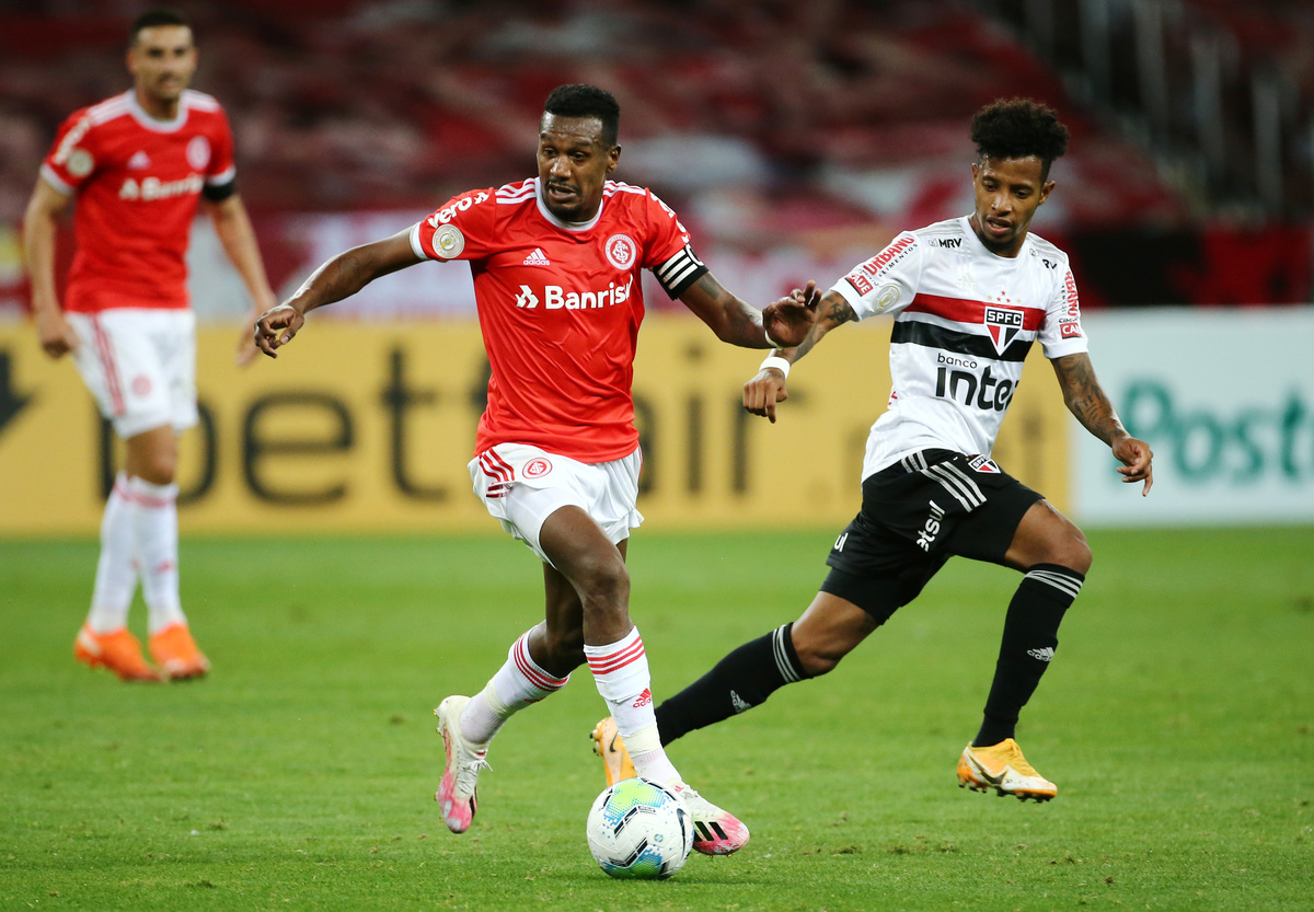 Soccer Football - Brasileiro Championship - Internacional v Sao Paulo - Beira Rio stadium, Porto Alegre, Brazil - September 26, 2020 Internacional's Edenilson in action with Sao Paulo's Tche Tche REUTERS/Diego Vara