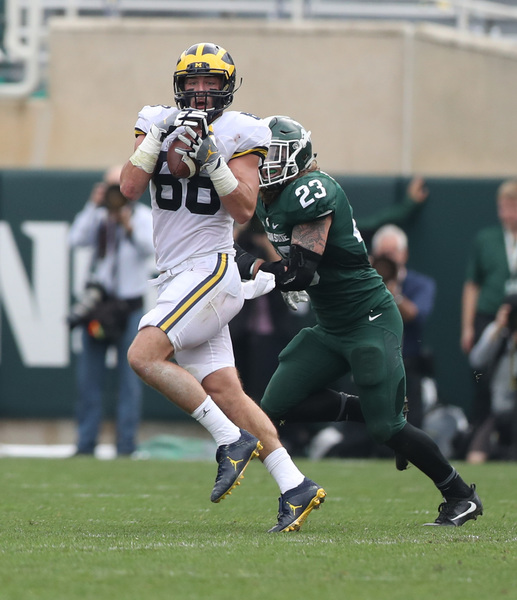 Michigan ripped off a 27-3 run to close the first half, eventually holding off the Spartans on the way to a 32-23 win at Spartan Stadium.