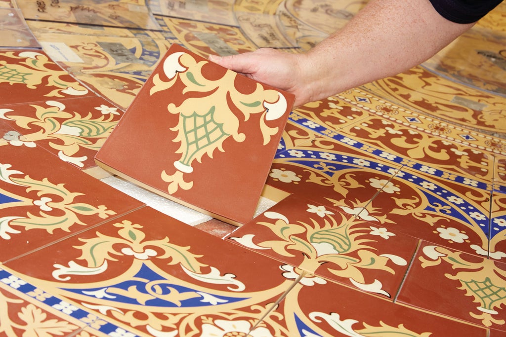 First up is the most awe-inspiring lobby in London, Westminster Central Lobby. At the heart of the House of Parliament, between the House of Commons and the House of Lords, the Central Lobby has been undergoing a major restoration that has taken 14 years to complete. One of the most fascinating elements of the conservation of the lobby, the building of which commenced in 1840, is the floor. After 150 years of use, the encaustic floor tiles, the vibrant colours of which extend two millimetres into the tile to ensure longevity and durability, were deteriorating. The full restoration of the encaustic tiled floor was unveiled in May this year after almost 60,000 tiles were either conserved or reproduced to ensure the iconic lobby was preserved in its original form. The company behind the sensitive treatment of this iconic floor, which has carried the footsteps of Churchill, Gladstone, Thatcher, and countless other political figures, is Craven Dunnill Jackfield, the UK’s leading handcrafted tile manufacturer that specialises in colour matching and restoring tiles in historic public, commercial and residential properties. The company is also responsible for a growing portfolio of other high-profile restoration projects in London, including work for Harrods Food Hall, Kew Gardens, and The Garrick Club.