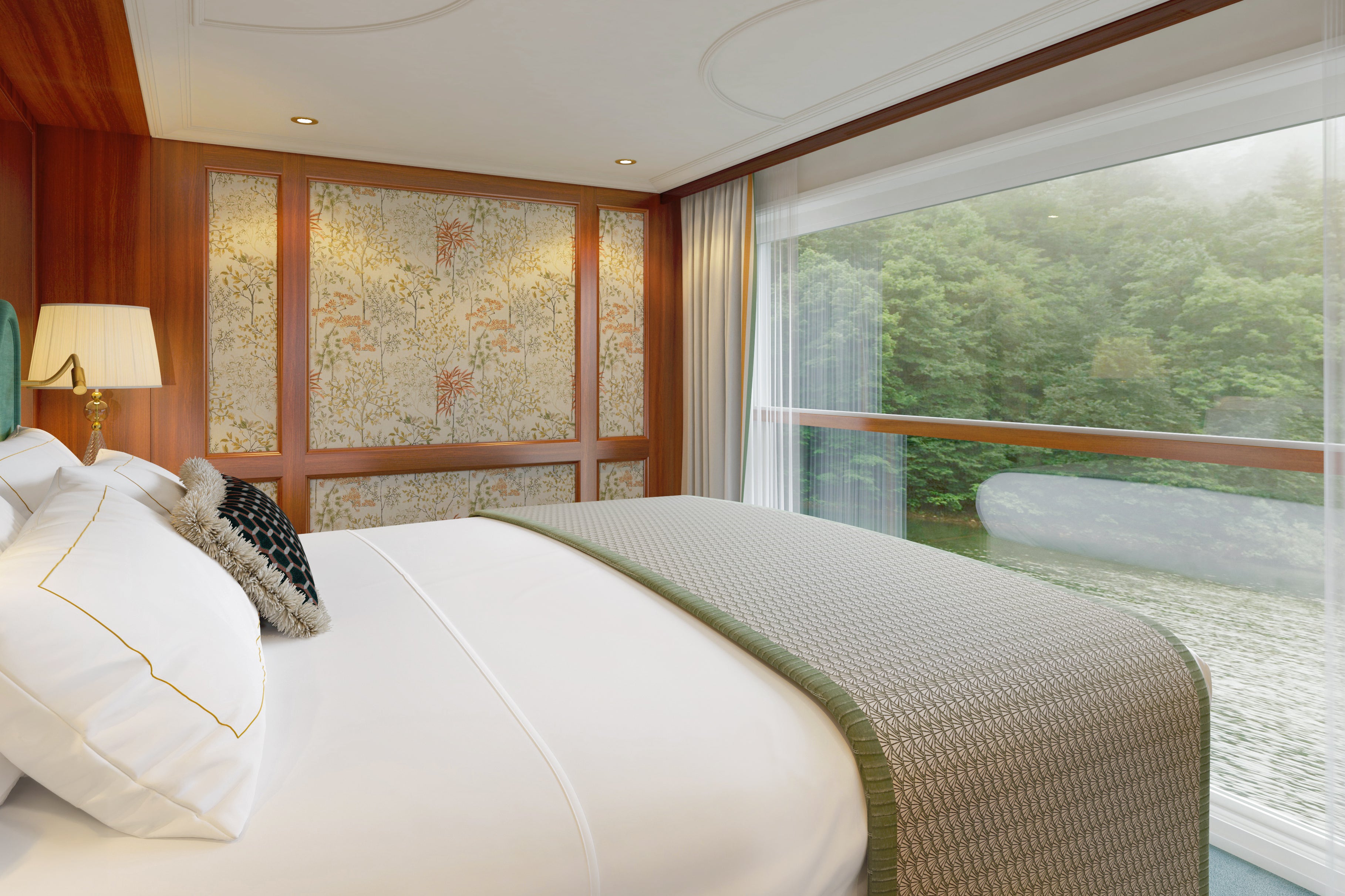 Guests will find interiors featuring a palette of greens, golds and blues as well as artistic tributes to the actress across the 154-capacity ship.