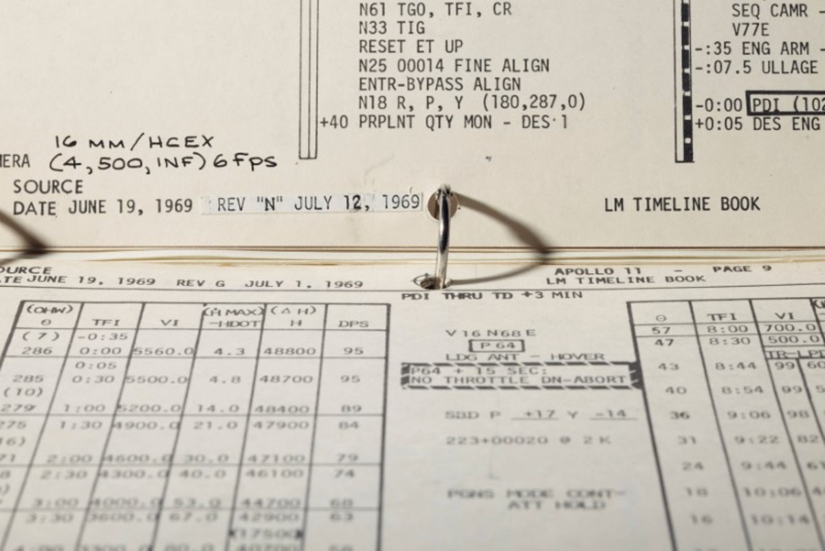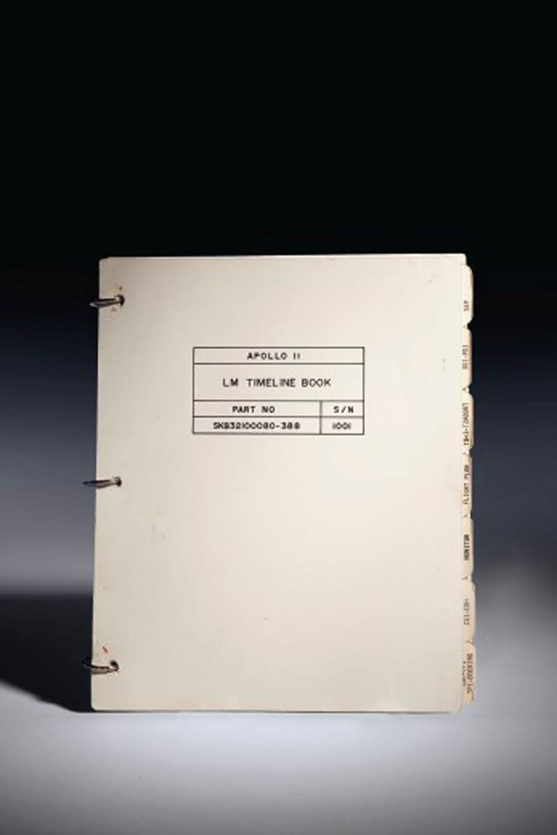 The 44-page ring-bound Apollo 11 lunar module timeline book details every procedure that was needed to undock, land and rendezvous the Eagle with its Columbia command module when Armstrong and Aldrin became the first men to walk on the moon.