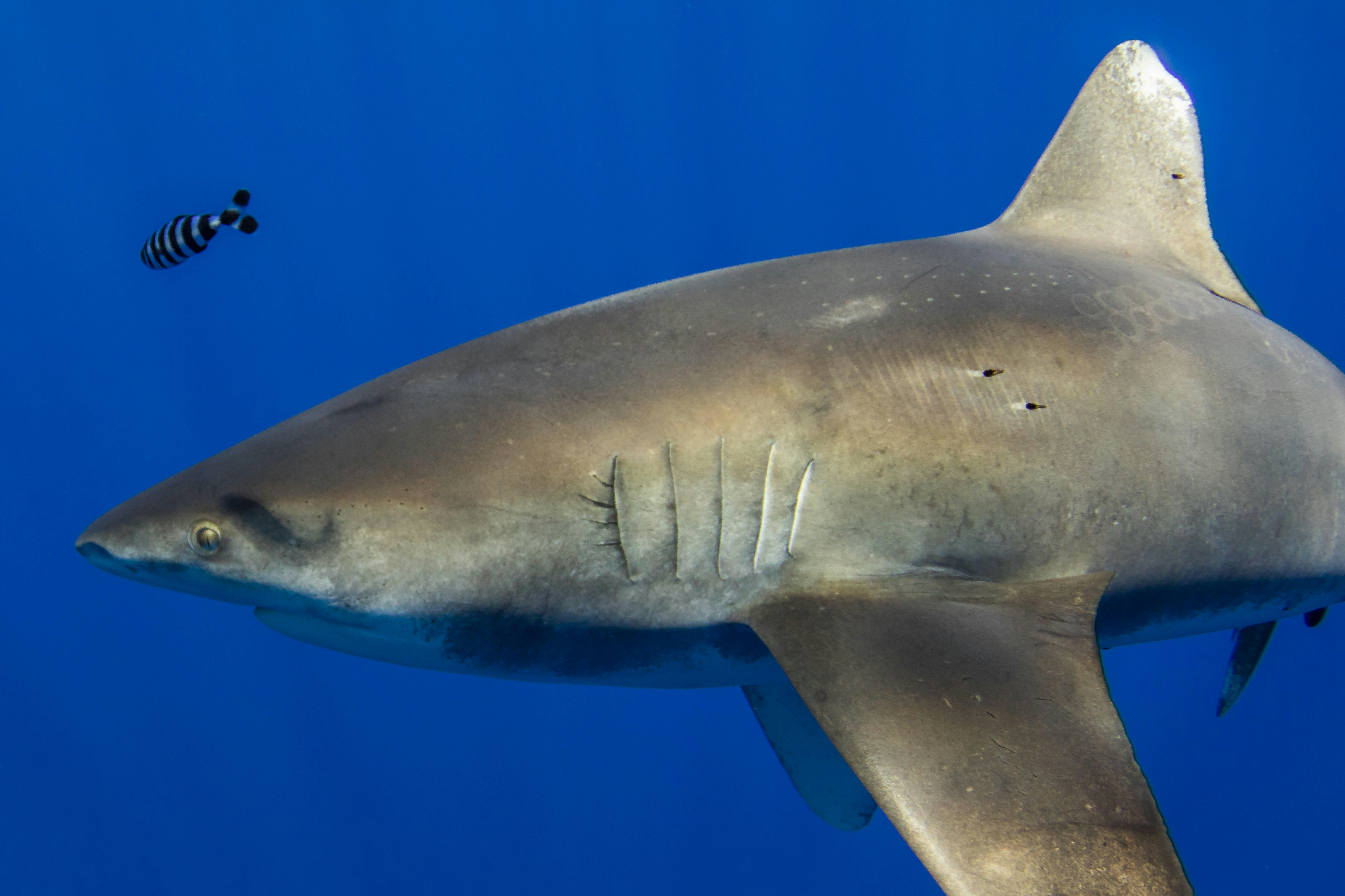 Before November 2019, study co-author Deron Verbeck had never seen anything like the “white dots” he would later notice on an oceanic whitetip shark.