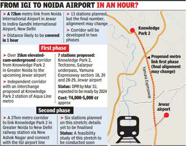GREATER NOIDA: The Delhi Metro Rail Corporation (DMRC) has proposed a 72km high-speed corridor between the upcoming Noida airport in Jewar and Delhi’s IGI airport.