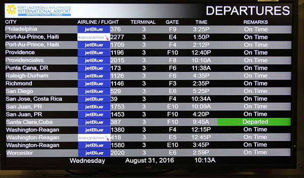The sold-out trip to the central Cuban area of Santa Clara took off from Fort Lauderdale-Hollywood International Airport just after 10 a.m. on JetBlue, the first airline to secure a commercial flight to Cuba. Flights on Silver Airways and American Airlines will follow in the coming weeks.