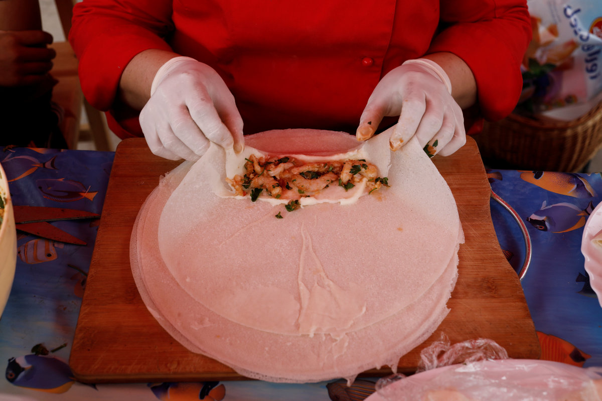 Karima Daikhi, 52, prepares bourek with fish to sell for Iftar (breaking fast) meals during the holy fasting month of Ramadan, at Bouharoun's fishermen's port in the commune of Tipaza Province, Algeria May 27, 2018. Picture Taken May 27, 2018. REUTERS/ Zohra Bensemra