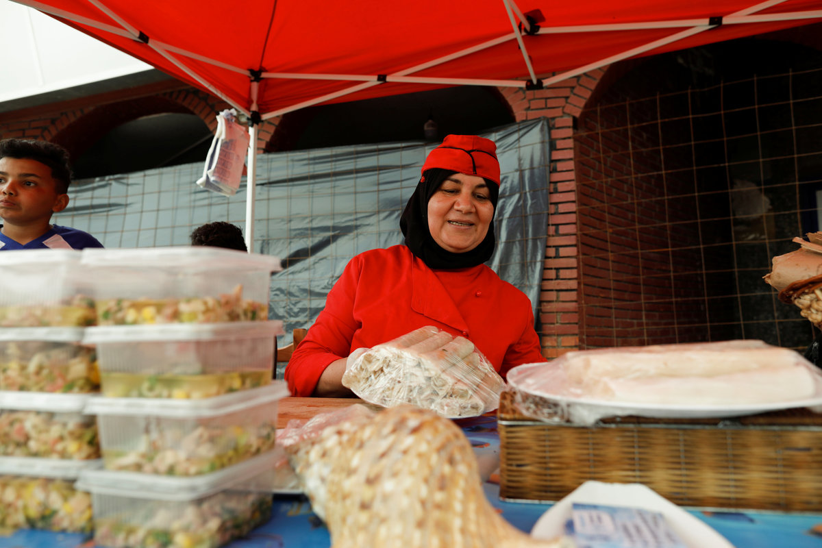 Karima Daikhi, 52, prepares bourek with fish to sell for Iftar (breaking fast) meals during the holy fasting month of Ramadan, at Bouharoun's fishermen's port in the commune of Tipaza Province, Algeria May 27, 2018. Picture Taken May 27, 2018. REUTERS/ Zohra BensemraKarima Daikhi, 52, talks to a customer as she sells her specialty fish food for Iftar (breaking fast) meal during the holy fasting month of Ramadan at Bouharoun's fishermen's port, in the commune of Tipaza Province, Algeria May 27, 2018. Picture taken May 27, 2018. REUTERS/Zohra BensemraKarima Daikhi, 52, shops for Iftar (breaking fast) meals that she will sell during the holy fasting month of Ramadan, at Bouharoun's fishermen's port in the commune of Tipaza Province, Algeria May 27, 2018. Picture Taken May 27, 2018. REUTERS/ Zohra BensemraKarima Daikhi, 52, sells her specialty fish food for Iftar (breaking fast) meal during the holy fasting month of Ramadan, at Bouharoun's fishermen's port in the commune of Tipaza Province, Algeria May 27, 2018.Picture Taken May 27, 2018. REUTERS/ Zohra BensemraKarima Daikhi, 52, shops for Iftar (breaking fast) meals that she will sell during the holy fasting month of Ramadan, at Bouharoun's fishermen's port in the commune of Tipaza Province, Algeria May 27, 2018. Picture Taken May 27, 2018. REUTERS/ Zohra BensemraKarima Daikhi, 52, shops for Iftar (breaking fast) meals that she will sell during the holy fasting month of Ramadan, at Bouharoun's fishermen's port in the commune of Tipaza Province, Algeria May 27, 2018. Picture Taken May 27, 2018. REUTERS/ Zohra Bensemra