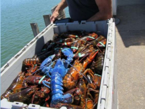 Only one in two million lobsters is blue, according to the Lobster Institute at the University of Maine, due to a copious amount of a protein from a genetic defect.