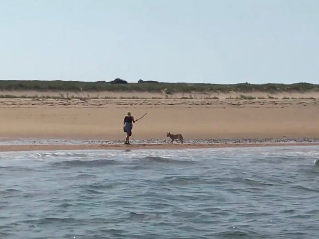 A pair of fishermen, William Kelley and Andrew DeCarton, heard Ms Sterlis crying for help, saying “he won't leave me alone” as the coyote circled her. Mr DeCarton recorded the incident as the fishermen approached the beach.